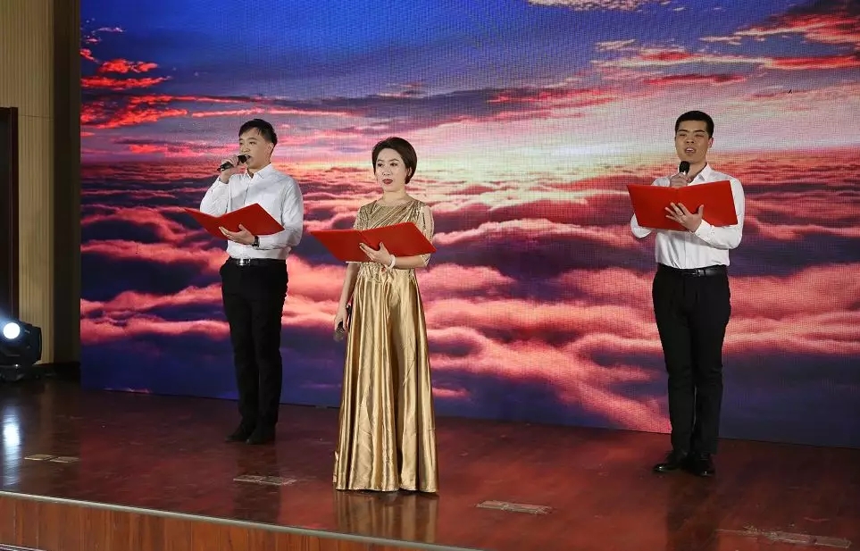 演出在歌伴舞《不忘初心》中拉開序幕,節(jié)目內(nèi)容豐富多彩、形式多樣,有情景劇、歌伴舞、小品、詩朗誦等,充分展示了集團員工良好的精神面貌。演員們個個精神飽滿,情緒高昂,以最好的狀態(tài)將節(jié)目奉獻(xiàn)給大家,贏得了觀眾陣陣掌聲。