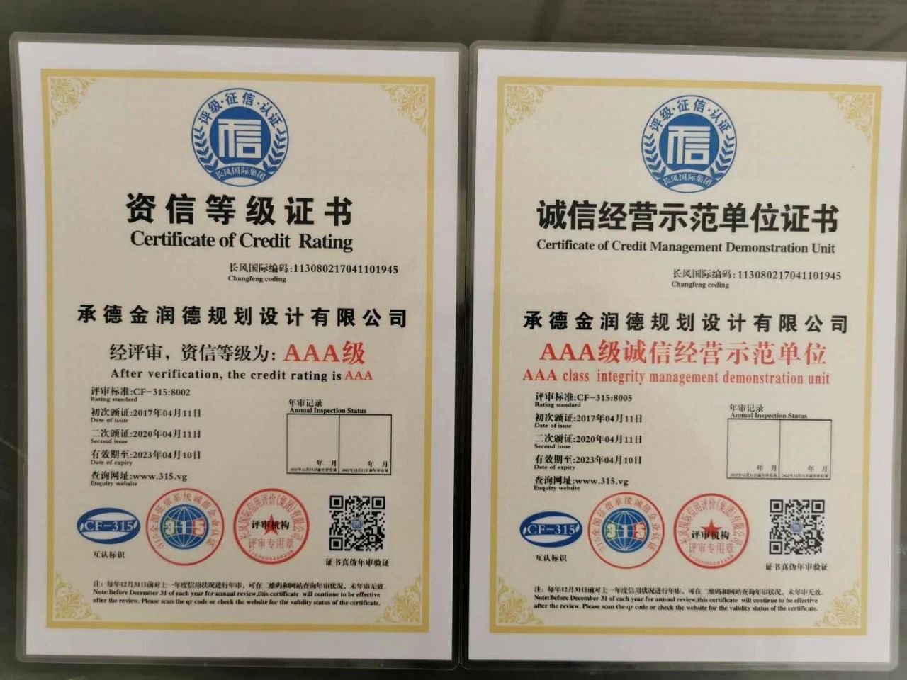 示范單位證書”、“AAA級質(zhì)量服務(wù)榮譽證書”、“AAA級重合同守信用證書”并得到了“AAA級信用單