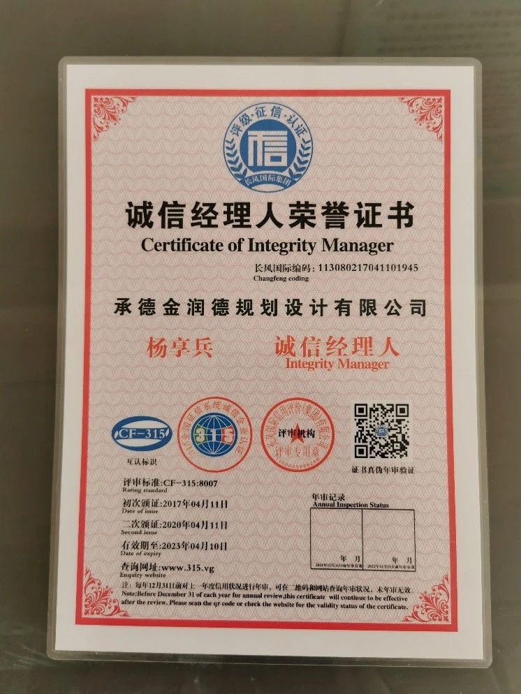 位”認定銘牌;楊享兵總經(jīng)理獲得“誠信經(jīng)理人榮譽證書”。